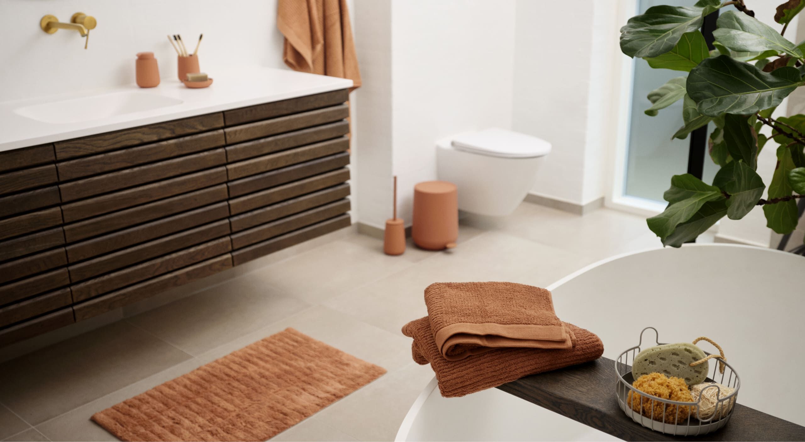 Tiles creates a stylish connection in the bathroom and is available in shades that match with our Ume, Nova and Nova One bath collections.