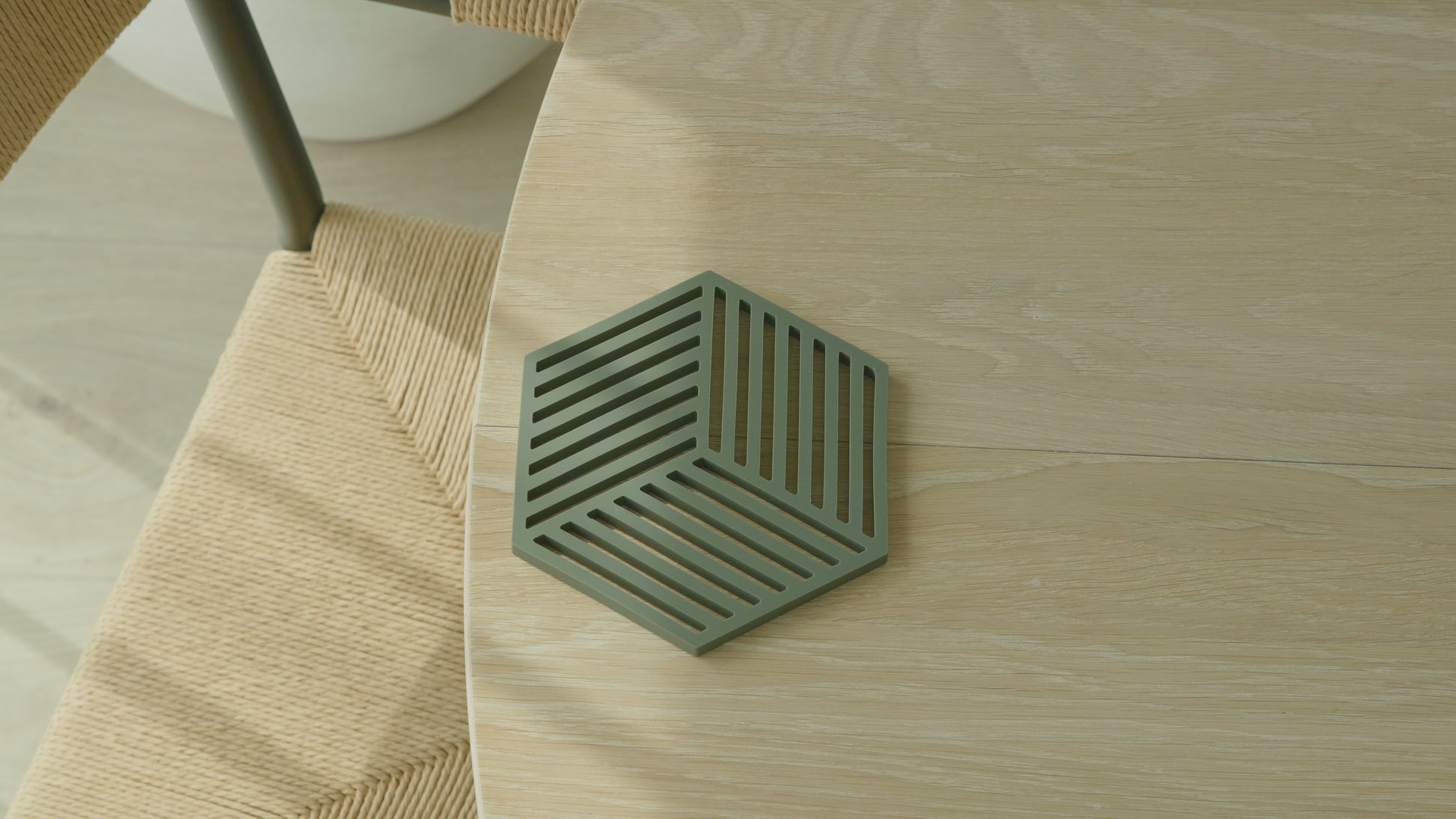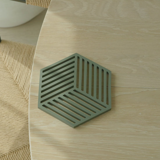 This refined silicone trivet brings sculptural design and everyday functionality together. Its geometric form protects surfaces from heat while adding a considered, design-forward touch to the table or countertop.